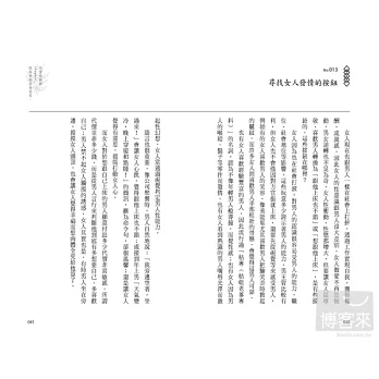 性愛不僅是姿態,更是人性本能的直覺,接納與給予之間,赤裸的時間刻度裡,唯一能做的是在毫不設防的情緒下,更仔細試探對方的心。從對另一半的尋尋覓覓、經過激情狀態的林林總總、到落幕後的吞吞吐吐…我們衷心冀盼性愛完滿,本書宛如拆解男女心機的性愛研究室,每掀開一頁即卸下一件摻雜了善惡、美醜、喜怒、真偽等等情感疑惑的外衣,掏盡暗藏於心房的難言之隱,學習從床上定位男女關係,體態真實、感知細膩,並且立場鮮明。