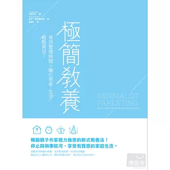 「《極簡教養》為讀者提供了一般教養書之外的新選擇。它的重點在簡化、自我充實與信心,本書提供家長自助的工具,更重要的是,給予家長重掌家庭生活的勇氣。」──安德烈.布坎南,紐約時報暢銷書《女孩的勇氣指南》(The Daring Book for Girls)作者