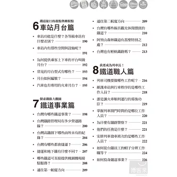 從有趣又好玩的鐵道旅行,到火車運轉的科學技術,你想要了解的火車資訊都可以在本書找到。