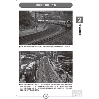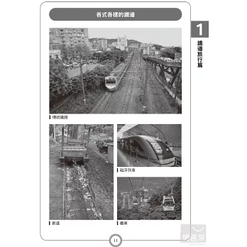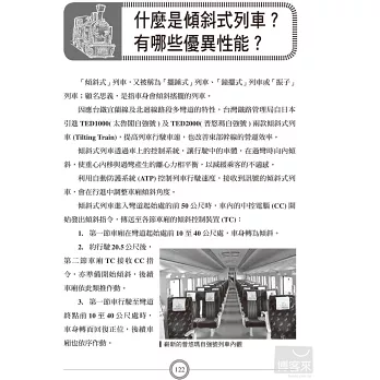 大量照片圖解,加上內行的文字說明,呈現火車車輛、鐵軌與月台設計的結構與原理。
