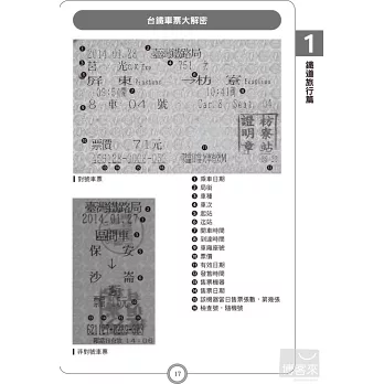 全書囊括實用的車票識別、時刻表判讀等技能,介紹鐵道迷珍愛的周邊商品、傳授鐵道攝影心法秘訣,亦詳細說明鐵路車輛的技術發展經歷,以及鐵軌線路的運作技術等,是鐵道迷入行的必備工具書。