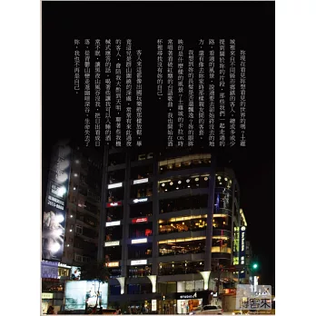 然後我於是才懂,那些自認為熟悉的地方在他的書裡為何變得如此陌生遙遠,那是因為我只是經過、看過,從沒去生活、去聆聽、去感受,更沒有和他一樣以當時的心境和所在的場所有過深刻的交會甚至對談。