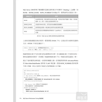 ■ 從SQL Server架構開始介紹,深入探究SQL Server的運作原理,如:軟硬體存取特徵、索引、資料存取介面、交易與鎖定等。