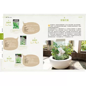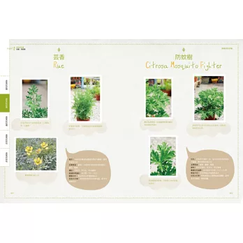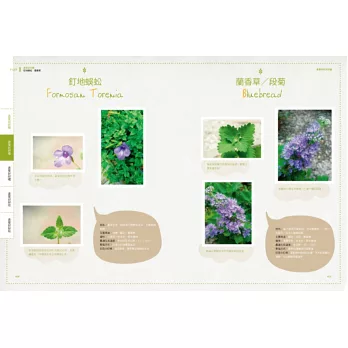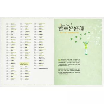 書中介紹了百種香草,依照各個香草的特性有不同的生活應用,將香草身為美味食物、庭園造景、具功用的花草茶、芳香精油或是手作DIY⋯⋯等。絕對讓你在學習香草種植的知識之外,還能創造出香草的不同樣貌,讓園藝生活充滿更多的樂趣。