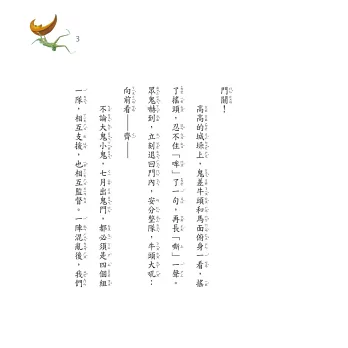 而「小鬼頭頭鬧搶孤」寫的,個個都是鬼,他們猙獰可怕嗎?不,他們戴墨鏡,擦防曬乳液,跟人一樣,怕被曬傷……「搶孤」則是農曆七月的最後一場祭祀,人們為了敬送「好兄弟」回家,設計出一種非常特別的競技方式當作儀式,是祝禱也是分享,祝禱來年平順,分享世間美好,讓這個人鬼擁擠的月份,有個燦爛結束。