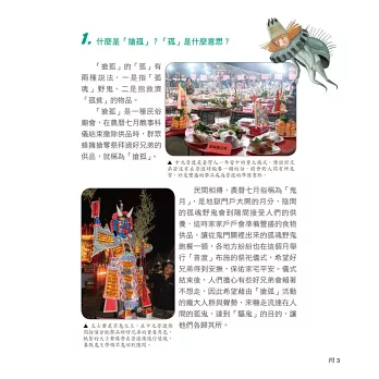 除了想像,還有真實。針對不同的慶典,我們拜訪了當地耆老、文史工作者,搜集了第一手的資料,努力將一個又一個熱鬧非凡,卻又意義不凡的慶典,原封不動的搬到讀者眼前。
