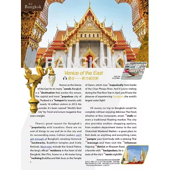 以歷史、地理為開端,帶出旅遊亮點、文化特色、必遊景點等,除了充分掌握完整旅遊資訊,還可藉由旁邊補充的小知識和文法解說,趁學習英語之便多多增長知識。即便沒機會去到當地,看完文章就像繞了世界一周,讓你視野大開。