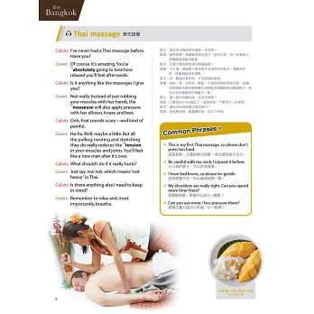 對話走向分為兩種:通用會話圍繞在旅行可能會碰到的一般狀況,諸如去遊樂園玩遊樂設施、造訪當地所需注意的事項等。情境對話則針對當地活動編寫,例如在墨西哥品嘗道地美食、體驗正宗泰式按摩等,以活潑有趣的筆調,讓讀者更加深入瞭解世界各地的風土民情,充分體驗當地生活。