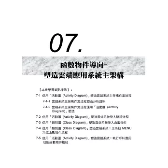 本書使用Step By Step 逐步講解方式,教導讀者使用最新的「函數式物件導向」系統分析與設計方法來規劃新一代的應用軟體系統。