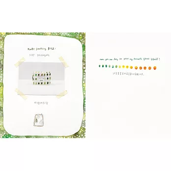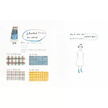 為了把挫折感減到最低,她從最簡單、生活中最常見的圓點、線條、格紋開始教大家畫畫,搭配她去希臘訪友、去深圳工作、去日本旅行時,得到的靈感。在她的巧思下,圓點變成橄欖、再畫成桃子,最後又成了腮紅。橄欖可以畫滿做成手工皂包裝紙,點點跟杯子最搭,線條原來畫上小花盆,超可愛。日本是格紋天堂,各種風格到處可見,何不來試試自畫桌巾。