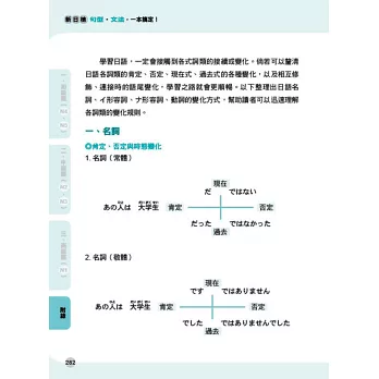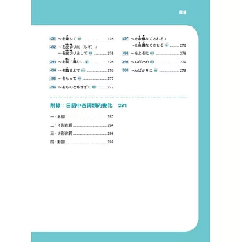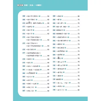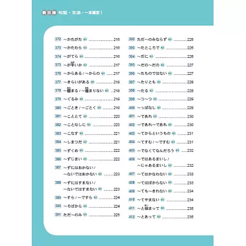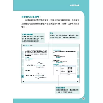 對基礎文法不熟怎麼辦?本書以表格式整理基礎文法,初學者可以先翻到附錄,熟悉文法之後再從句型的初級篇看起,循序漸進至中級、高級,逐步累積日語實力。