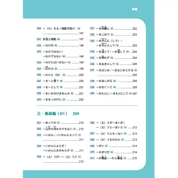 ‧考N1的讀者則是除了高級篇所有的140個句型以外,務必確認中級篇的內容是否都會了,因為N1的考題中,會有一半是和N2相關的喔!