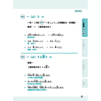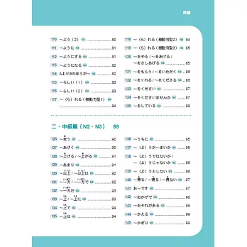 ‧考N3的讀者,除了中級篇的75個句型外,建議確認初級篇是否都精熟了。