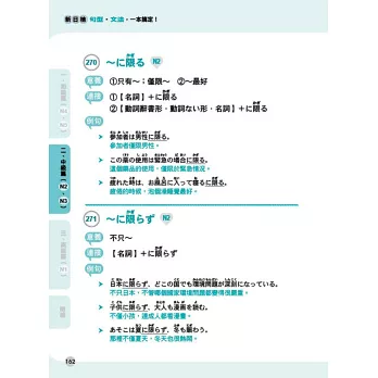 ‧考N2的讀者,除了N2範圍的160個句型外,千萬不要忘了N3的句型,也就是中級篇必須全都看熟。