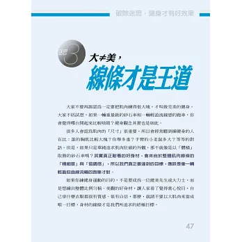 藉由這本書可以得到效率、簡單、穩定進步的方針,讓讀者能輕鬆運用上手,使自己能在健身過程中得到滿足與喜悅。