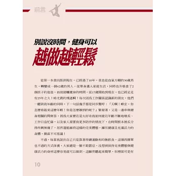 只要根據本書教授的觀念與動作,一步一步跟著做,你絕對能從中受益,不僅練出好身材、好體力,更能擁有美好人生。