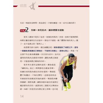 所以,你應該買一本他的書,從認識自己的身體開始,按部就班,找出適合自己的運動方式,鍛鍊出健康人生。