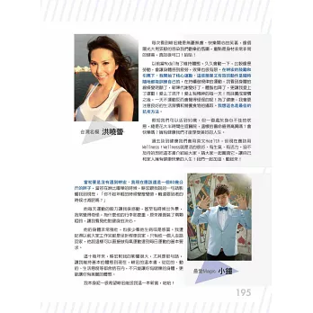 過去健康我們會用英文Health,但現在應該用Wellness!Wellness就是活的很好、有生氣、有活力。迫不及待的想把畊宏這本書介紹給大家,並實踐它,讓自己和家人擁有健康快樂的人生~我們一起加油!動起來!──台灣名模 洪曉蕾