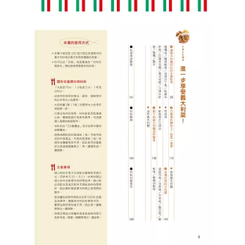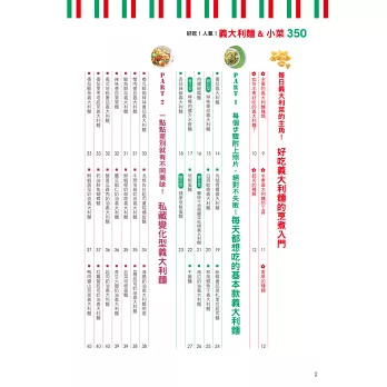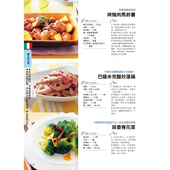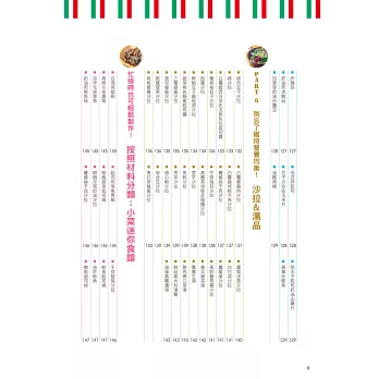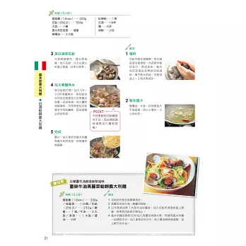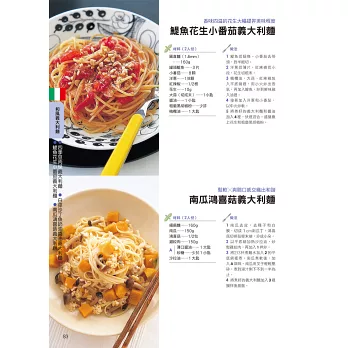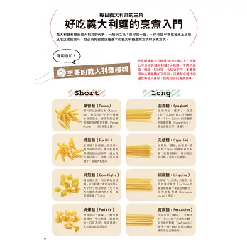 本書一次集結多達350道義大利麵、披薩、燉飯及義式小菜配方,從基礎的食材搭配、醬汁選擇,到進階級的自製麵皮、手撖麵條一應俱全,還有超人氣的乳清起司餃(Ravioli)、米蘭風炸豬排、義式水煮魚也都搜列其中!對於喜愛嘗鮮,希望「一本打盡」能將義大利從北到南各式風味,進而學會混搭和風的朋友,千萬別錯過本書精彩的內容。