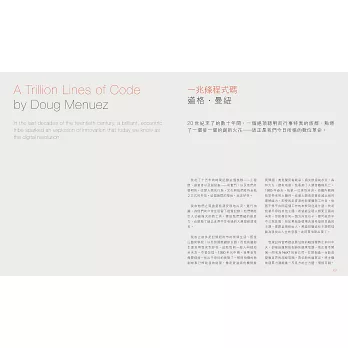 這些公司是出了名的保全森嚴、過度封閉,曼紐卻能獨自穿梭捕捉幕後影像。他目睹了心碎的挫敗與出乎預料的成功時刻、創造歷史的瞬間,以及揭露這些幕後英雄每日每夜的生活。這個飛速劇變的時代,影響了我們的文化與生活,或大或小每個層面;也創造了更多的工作與財富,在人類史上尚無其他時代可以比擬。道格.曼紐就在現場,見證了整個革命。