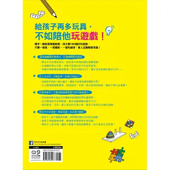 本書收錄的遊戲簡單好上手,有些是歷久不衰的經典遊戲,有些是你早已遺忘的童年遊戲,還有來自澳洲有趣、創新、你想都沒想過的獨特遊戲……只要一張紙、一支筆、一小段故事、一副紙牌、一把麵粉、一顆毛線,就能鍛鍊孩子的想像力與創造力,將有限發揮到無限,全家一同享受遊戲的快樂。