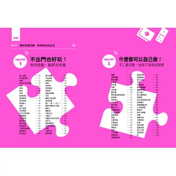 1.介紹180個可祖孫三代同樂的有趣活動,每個活動都有詳細步驟介紹,簡單好玩!