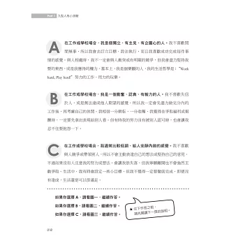 我也將這本書介紹給很多同事與朋友,大家透過書裡的小測驗,都能知道自己是屬於哪一種類型的人格特質,也能藉著書上所寫的各型人與其他型人之間的相處祕訣,達到有效的團隊合作與溝通。所以這本書對我而言,不只在自我瞭解方面有很大的助益,在團隊帶領或合作共融上,也有十分顯著的效果。