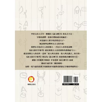 本書之出版,對於讀者學好漢字,從而能更好地閱讀利用漢字寫成的寶貴文化典籍,可以提供極大的幫助;糾正了《說文解字》的大量缺失,成為這一寶貴文字學專著的功臣;展示了嚴謹的學風,有利於當今學風的改進;如此等等。的確值得祝賀。茲特為序,與讀者一起分享難得的快樂。