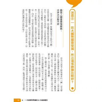 腎臟科名醫江守山醫師,同時也是《吃對保健食品!》、《食在安心》的暢銷書作者,他開宗明義指出,腎臟病之所以成為台灣人的「新國病」,全是因為錯誤觀念根深柢固。為此,他特別在書中破解國人對腎臟的8大錯誤觀念,像是男性常把泡泡尿、混濁尿,跟腎虧混為一談,寧願選擇來路不明的偏方而不願就醫,結果反而造成腎臟嚴重損壞、必須洗腎;有些人怕吃太鹹腎臟會受損,特別買標榜健康的低鈉鹽,卻不知低鈉鹽的鉀含量非常高,腎功能不佳者吃了反而更要命……等等。這些似是而非的觀念,都是腎病罹患率居高不下的主因。