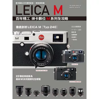 本書將帶您深入研究LEICA M〔Typ 240〕的各項功能,並回顧LEICA100年來的優良傳統與歷史。本書還特別聘請多位資深攝影師,利用多支經典鏡頭拍攝多張精彩的範例,並詳細解說每支鏡頭的長處。此外,還會詳細說明如何以LEICA相機附贈的兩套軟體(Lightroom、Silver Efex Pro 2),為相片進行後製。最後的章節,將為LEICA的初學者解說LEICA相機的基礎操作方式。