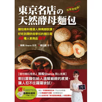 我很喜歡「朝日屋」的這本食譜書,因它讓我學習到更有變化的麵包配方與作法,並且從中得到很多靈感,讓我更有動力想要嚐試去做做看不一樣的麵包。此外,也因為我很愛「分享」的感覺,所以,當我看到「朝日屋」竟然成立了烘焙學校,不吝惜將用來做生意的麵包食譜與作法傳授給同樣喜愛麵包的人,所以,心中更有種熟悉的溫暖感覺!其實,我很憧憬日本的烘焙業,也很想去修業,但受限於孩子還小,還不能做出妥善安排,所以始終尚未成行。不過,現在有了這本書,我暫時就不必買機票、繳學費,只要照著書裡的步驟做,就能像在「朝日屋學校」上課一般,做出超好吃的麵包了!
