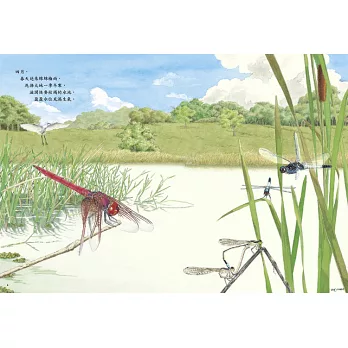 ◎全新版,開本更大,聚焦在池上池下的生態景觀,也可微觀更多細節;書後附有蜻蜓觀察筆記與物種解說。