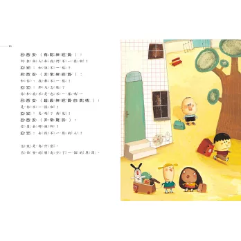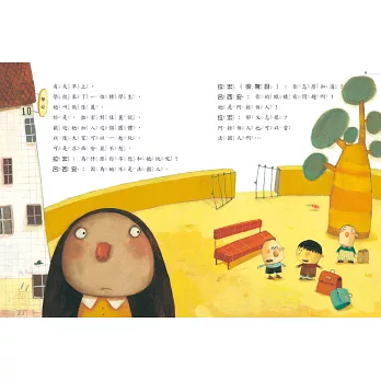 法國童書作家提利以生動幽默的對話,將嚴肅的歧視主題成功轉化為兒童日常生活的切身經驗,就像孩子在遊戲中偶發的插曲。故事結構不走一般的起承轉合老套,文字前後前後呼應拉出開放的想像空間,讓讀者自由體會與思索。