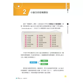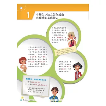 本書分為六大篇,循序漸進地指導學生如何製作小論文,內容包括如何發想題目、設計流程、撰寫前言、整理文獻、安排正文、說明研究過程、指出研究結果並下結論。書中詳細說明各種寫作格式與引註方式,示範各種寫作原則與要訣,讓您一看就懂,即學即會,立刻活用!