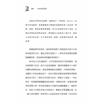 通常提到林肯,我們只會想到美國的南北戰爭或解放黑奴。但林肯還有很多不為人知的事,特別是在領導力方面。林肯從挫敗中再度站起來的毅力;他重用政敵的 包容力;還有他控制與調適自己情緒的能力。天知道領導人是多麼需要在這些方面加油!!──黑幼龍,卡內基訓練大中華地區負責人