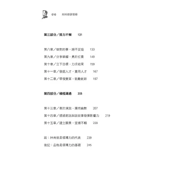 每一次讀林肯,每一次的體會都不一樣。尤其夜深之時,掩卷沉思,細細咀嚼林肯的領導藝術,更是每次都讓我深深感動。──劉必榮,東吳大學政治系教授