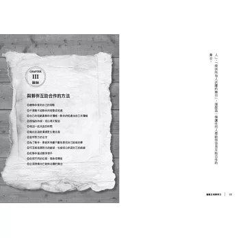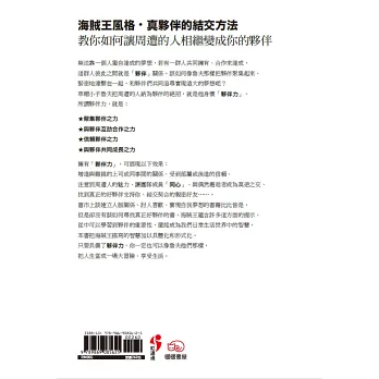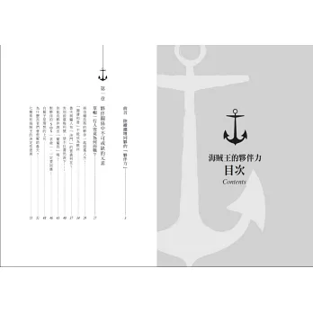 讀海賊王這部漫畫,不只是令人覺得有趣或讓人嚮往而已,還能成為我們日常生活世界中的智慧,本書把海賊王描寫的智慧加以具體化和形式化。只要具備了夥伴力,你一定也可以像魯夫他們那樣,把人生當成一場大冒險、享受生活。