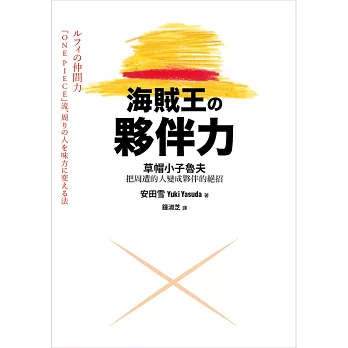 漫畫《海賊王》至今發行冊數已超過三億本,究竟為何如此受歡迎?不僅是小孩,幾乎是男女老少都喜愛。若只用「因為有趣」這理由,實在不足以說明。它受歡迎的秘密,正是在於海賊王的中心主題「夥伴」。因為它把世人所憧憬的、真實的人際關係,都投射在漫畫中。從中可以學習到夥伴的重要性,並藉此豐富你的人生,讓你過得更生氣蓬勃、亮麗光彩。夥伴的存在,在生活上是不可欠缺的。就因為有好朋友,不管碰上什麼樣的逆境也會拼命努力,還能共同分享喜悅。每個成員都抱持著一種希求,「想要擁有無可替代的夥伴」,作者認為正是這樣的希求,把海賊王推上了漫畫怪獸的地位。