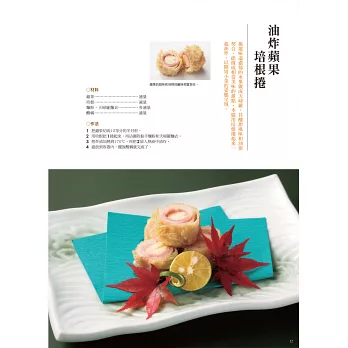 全書以彩色圖片搭配文字,附上詳細的食譜,跟著大師一步一步做,美味的料理與滿足視覺感受的擺盤色彩,大大滿足炸物愛好者的感官。甚至有不少驚為天人的創意料理,腦中不斷冒出,「原來這也可以變成炸物!」的想法。