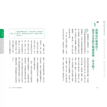 面對「農藥」的問題,農藥專家顏瑞泓教授以他在農藥方面豐富的知識學養,在本書中提供了實用的概念知識和清洗的方法。例如:「當季」、「在地」食材相對較為安全;颱風前「搶收」、「搶買」相對較不安全等非常實用的原則。聯合國出版的《二○一○全球非感染性疾病狀況報告》中,明確指出慢性疾病為目前全球最大的健康威脅,而主要的風險因子包括:吸煙、少活動、酗酒與不健康飲食。其中不健康飲食首推「蔬菜水果攝取不足」。期望本書可以協助大家安全地攝食足夠量的蔬菜、水果及全穀、豆類等未精製植物性食物,讓全民有更健康的未來!