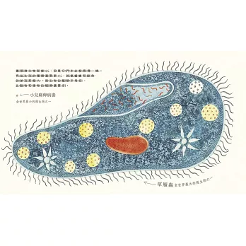2.這是一本美麗的圖畫書,繪者以巧筆描繪花樣繁多的微生物,你相信嗎?草履蟲可以這麼漂亮!