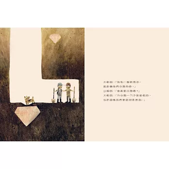 文字正經八百,幾乎可以說是平淡無奇,但是有趣的地方就在於文字和圖畫互相搭配後,產生了出人意表的幽默感(男孩們非常謹慎的努力往下挖,反而和愈來愈多的大鑽石背道而馳)。……孩子會非常沉迷於「指出鑽石在哪裡」的樂趣之中。——《美國兒童圖書中心週報》