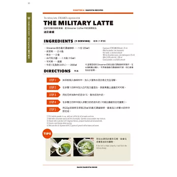 ◎獨門配方:迷彩拿鐵-加入抹茶&可可粉、白巧克力醬所完成具有迷彩般的拉花咖啡,是作者自家的招牌飲品!