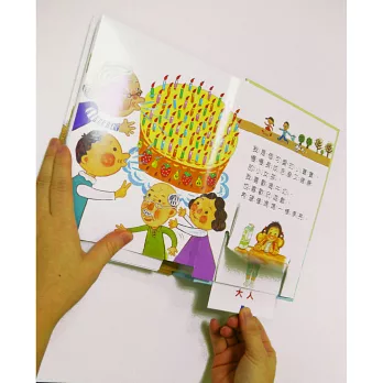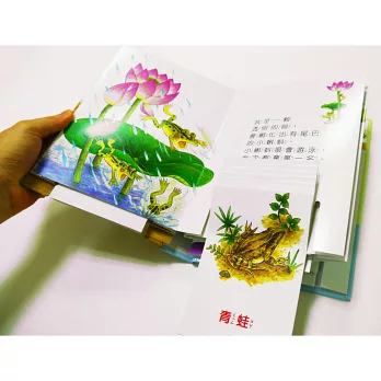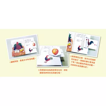 你知道小小的種子可以長成什麼嗎?蝌蚪如何變青蛙?雞蛋如何長成母雞呢?這本好玩的翻拉書,讓小朋友透過自己動手操作了解動植物和人類是如何長大的,兼具遊戲和認知,還有重複、好念的句子,讓小朋友邊玩邊學習,是本寓教於樂的魔法書喔!