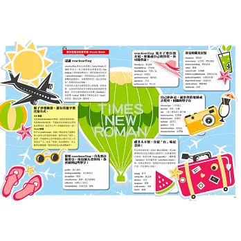 單字雖非萬能,沒單字卻萬萬不能,除了引人注目的開場白外,想要進一步談論話題,相關字彙必不可少。本書採用「群組單字聯想法」,根據聊天時可能出現的各種狀況羅列出超高頻單字,將相關用語一次記牢牢,讓你不但能與老美哈拉,還能侃侃而談、言之有物,培養紮實的口說能力!