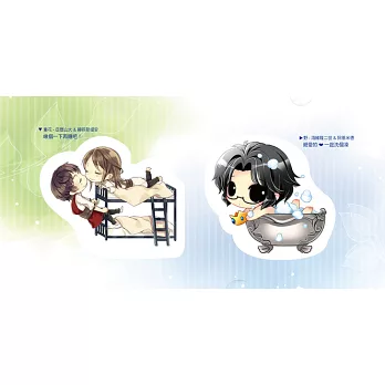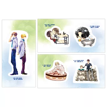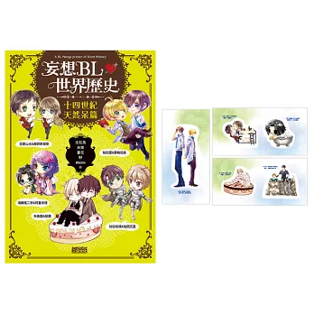 2015國際書展限定商品,本超值組合內含《妄想BL世界歷史:十四世紀天然呆篇》五位作者親筆簽名書一本,以及親手繪製「人物軋型書籤」一套(5入)。
