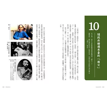 一六八四年,臺灣被納入清朝版圖。三百年來,歷經甲午戰敗後簽訂《馬關條約》,被割讓給日本,開始長達五十餘年的日本殖民統治,以及不同制度與民族性的融合激盪。二戰結束後,國民政府播遷來臺,展開另一波政經上的統治與文化調和,臺灣歷經戒嚴、報禁到開放,隨著一九七二年國父紀念館落成,偉人步入殿堂,當代臺灣走向另一番民主新貌……