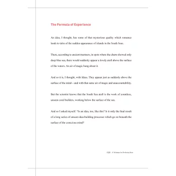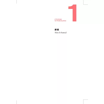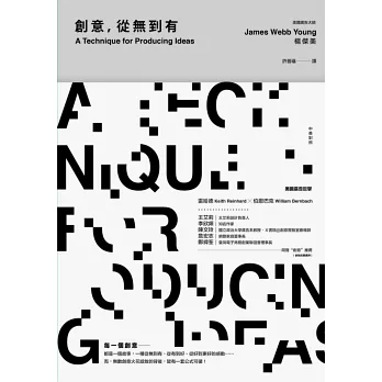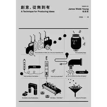 楊傑美(James Webb Young)的《創意,從無到有》(A Technique for Producing Ideas)於一九六五年第一次出版,可以說是本老書了!外觀薄又輕巧,內容的敘述方式也很簡單易懂,所以我不到半天就把整本書看完了!他將設計過程分成五大步驟,清楚地敘述並舉例每個階段該完成的事情,因此書齡老歸老,我一念完的感想就是「THIS IS IT!」彷彿有人幫我把我心中想的設計過程給記錄了下來似的。