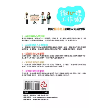多少人在這裏追逐,在這裏尋找,在這裏迷茫,甚至在這裏失去。也許你會問,為什麼總有人格格不入?為什麼總有人頻頻跳槽?為什麼總有人笑而不語?為什麼總有人風生水起?答案其實很簡單——對方不開口,也能夠知道他的想法;對方不答應,也有辦法說服成功——只有讀懂人心,才能成為職場贏家;只有掌握簡單實用的心理技巧,才能在職場生涯中步步高升。