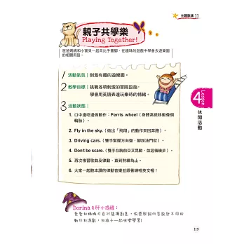 當孩子熟記主題歌曲之後,爸爸媽媽可視情況進行書中的互動教學遊戲,透過遊戲加深孩子的學習印象。